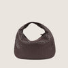 Crafted with Bottega Veneta's iconic Intracciatio leather, the Intrecciatio Large Hobo offers both style and functionality. Its spacious suede interior and top zipper makes it perfect for carrying your daily essentials, while the wide top handle allows for comfortable shoulder or hand carrying. The warm brown hue adds versatility, effortlessly complementing both casual and formal ensembles. Don't miss out on this practical and elegant bag!