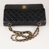 This is an authentic Chanel Medium Classic Double Flap Bag in Black Diamond Quilted Lambskin.