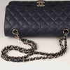 Arguably one of the most iconic handbags in fashion history, the Chanel Classic Flap is a timeless piece that never goes out of style. This particular version stands out due to its highly coveted combination: durable navy Caviar leather, elegant diamond quilting, and goldtone hardware, a pairing that is both sophisticated and surprisingly rare on the resale market. The Chanel Classic Medium Double Flap features a structured silhouette, a burgundy leather interior, and multiple compartments for organization.