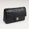 Introducing the Classic Medium Double Flap Bag from Chanel. With a stunning color combination of black diamond quilted lambskin and silver hardware, this bag is perfect for all occasions. Its spacious leather interior fits your daily essentials, while the elegant silver-colored hardware and CC twist lock add a touch of luxury. Versatile and stylish, don't miss out on this must-have accessory from Chanel!