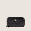 This is an authentic Chanel Zip Around Wallet in shiny black Caviar leather.