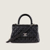 This is an authentic Chanel Mini Coco Top Handle in Black Caviar Leather.