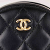 The Chanel Round Pearl Crush Shoulder Bag is made in diamond quilted black leather with a round silhouette and features the Pearl Crush detail on the chain, allowing the strap length to be easily adjusted. The top zipper opens to a compact interior with room for small essentials such as cards, keys, and a lipstick, making it suitable for both everyday wear and more elevated occasions. Can be worn on the shoulder or crossbody for a comfortable and elegant look. Don’t miss out!