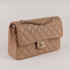 This is an authentic Chanel Small Classic Double Flap Bag in Dark Beige Caviar Leather & Gold-colored Hardware.