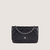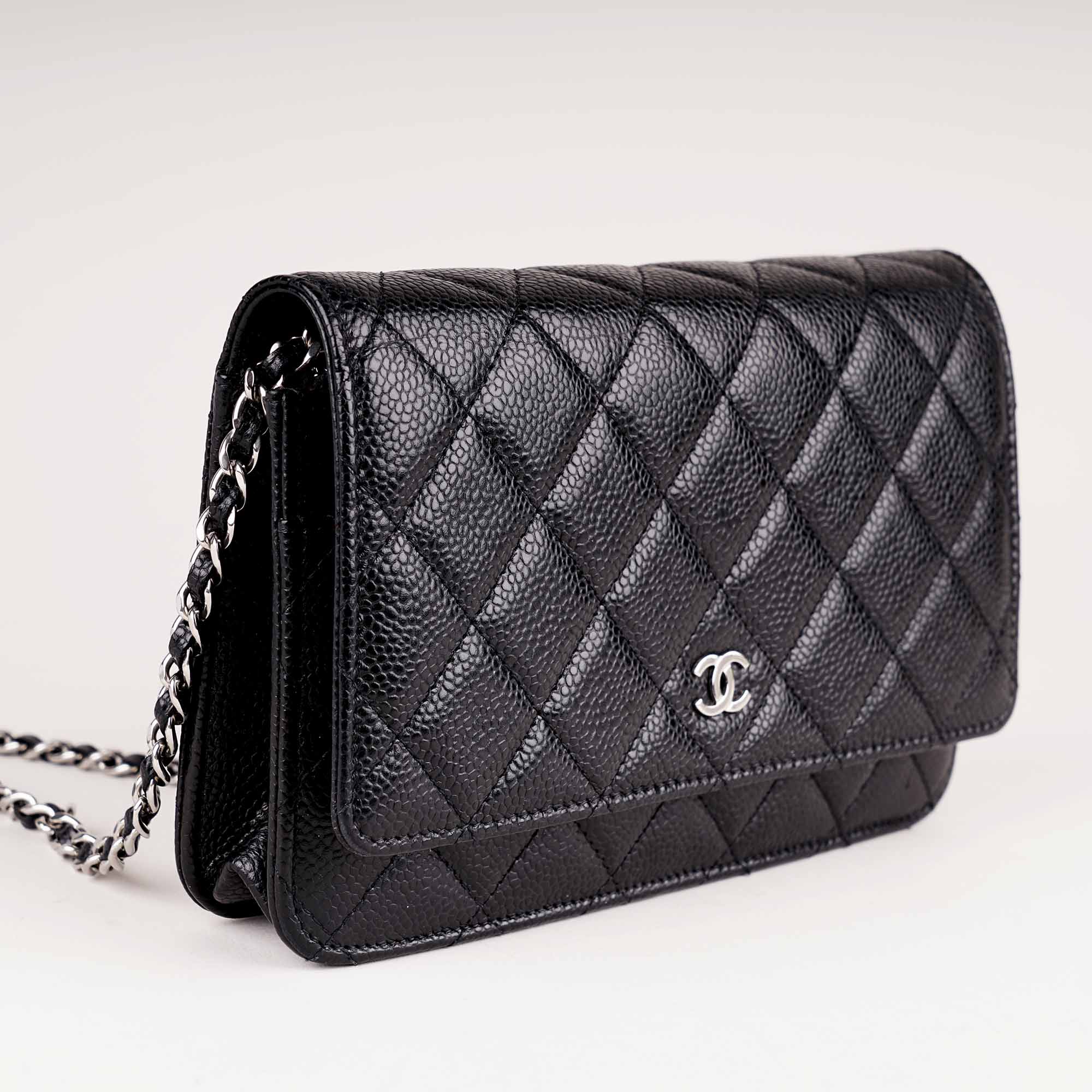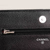 This is an authentic Chanel Wallet on Chain in black Caviar leather.