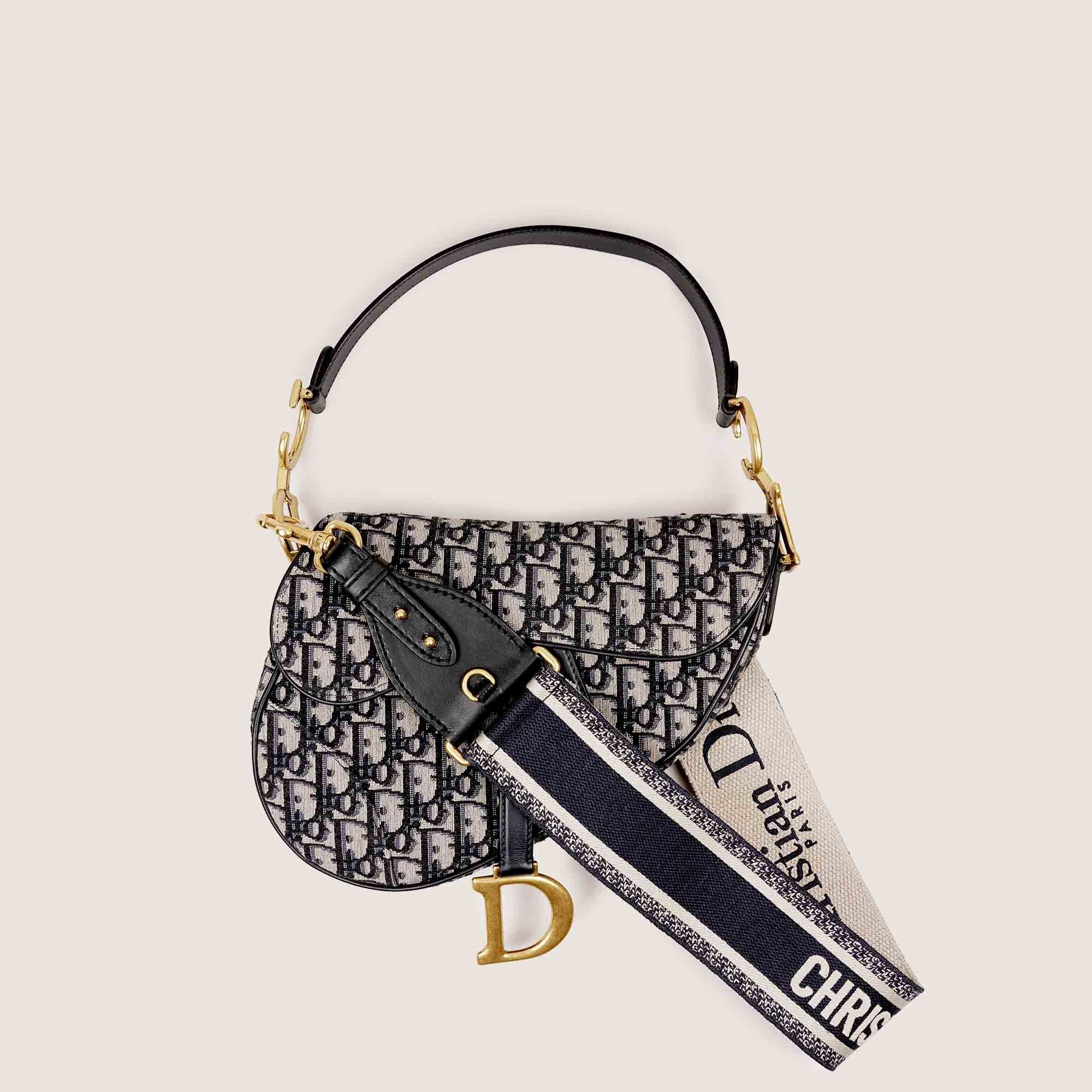 This is an authentic Christian Dior Saddle Bag with Strap in Blue Dior Oblique Jacquard.