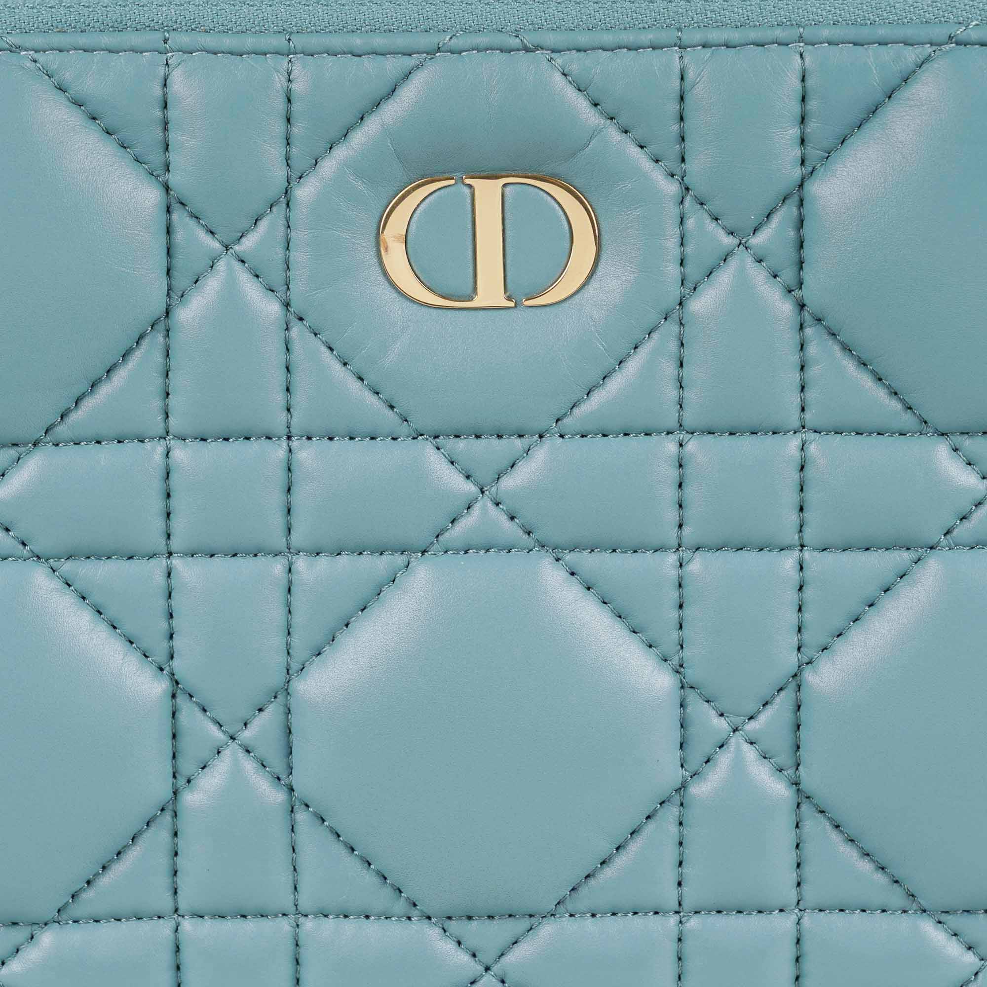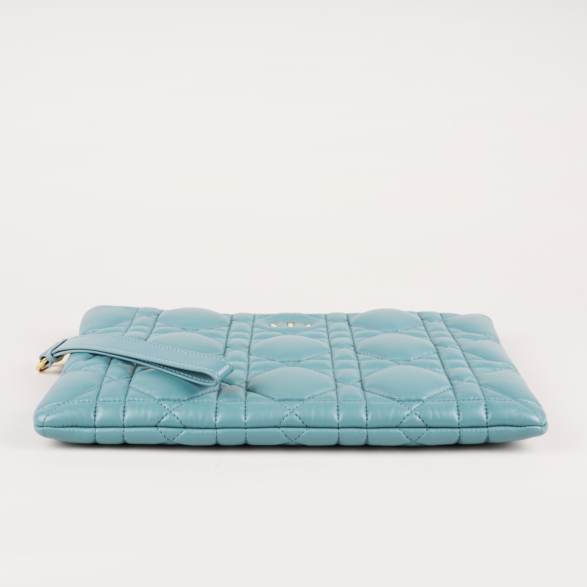 This is an authentic Christian Dior Large Dior Caro Daily Pouch in Blue Cannage Calfskin.