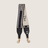 Enhance your Dior bags with the elegant shoulder strap. Made with a black, grey and white canvas and reinforced by black calfskin, it features the iconic 'CHRISTIAN DIOR' signature at the center. Attach it to any bag with the aged gold-finish metal snap hooks and personalize your look by wearing it over the shoulder or crossbody. Don't miss out!
