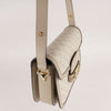 This is an authentic Gucci Horsebit Medium Bag in beige and white canvas.