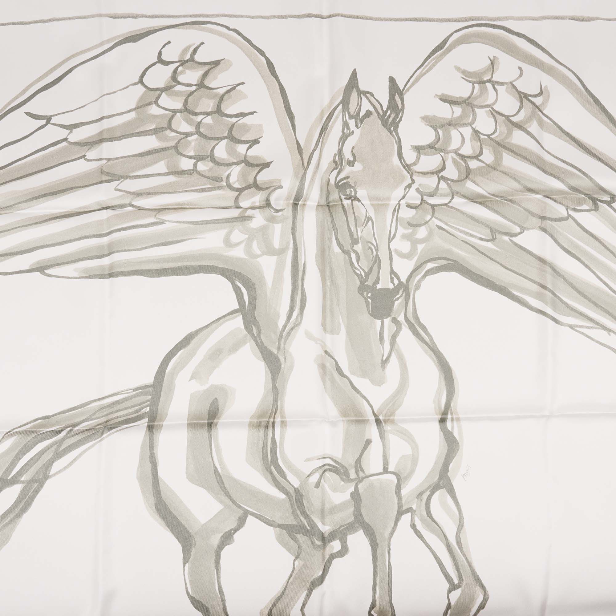 This is an authentic Hermès Carré Twill “Libre Comme Pegase” Scarf in blanc and multicolor silk.