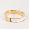 Enhance your style with the Clic H bracelet. Featuring a sleek design with white enamel and gold-plated hardware, this luxurious accessory exudes sophistication. Elevate any outfit with this timeless and elegant piece, a must-have for any fashion enthusiast. Don't miss out!