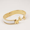 This is an authentic Hermès Clic Clac H Bracelet in Gold-Plated Metal and White Enamel.