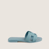 This is a pair of authentic Hermès Oran Sandals in Bleu Tonnerre Epsom Leather, size 37.