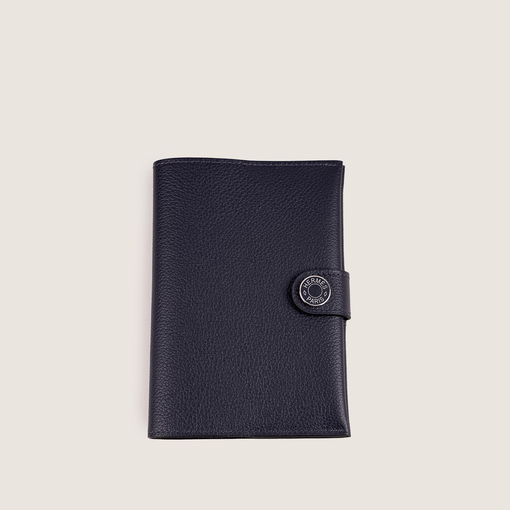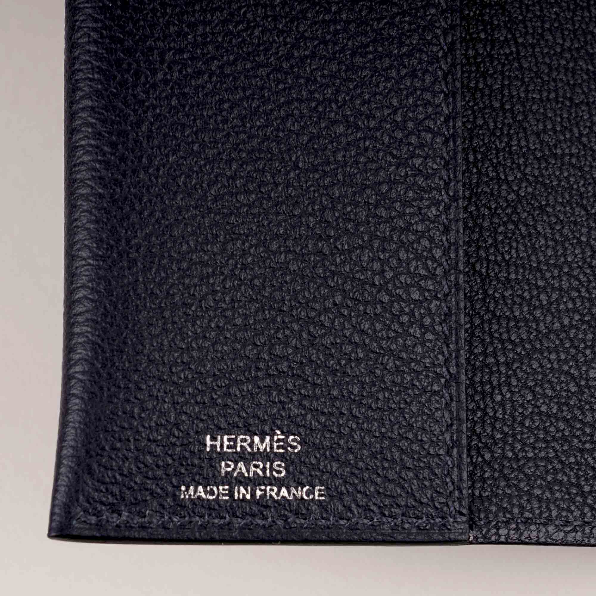This is an authentic Hermès R.M.S Passport Cover in Bleu Nuit Evercolor Calfskin.