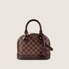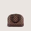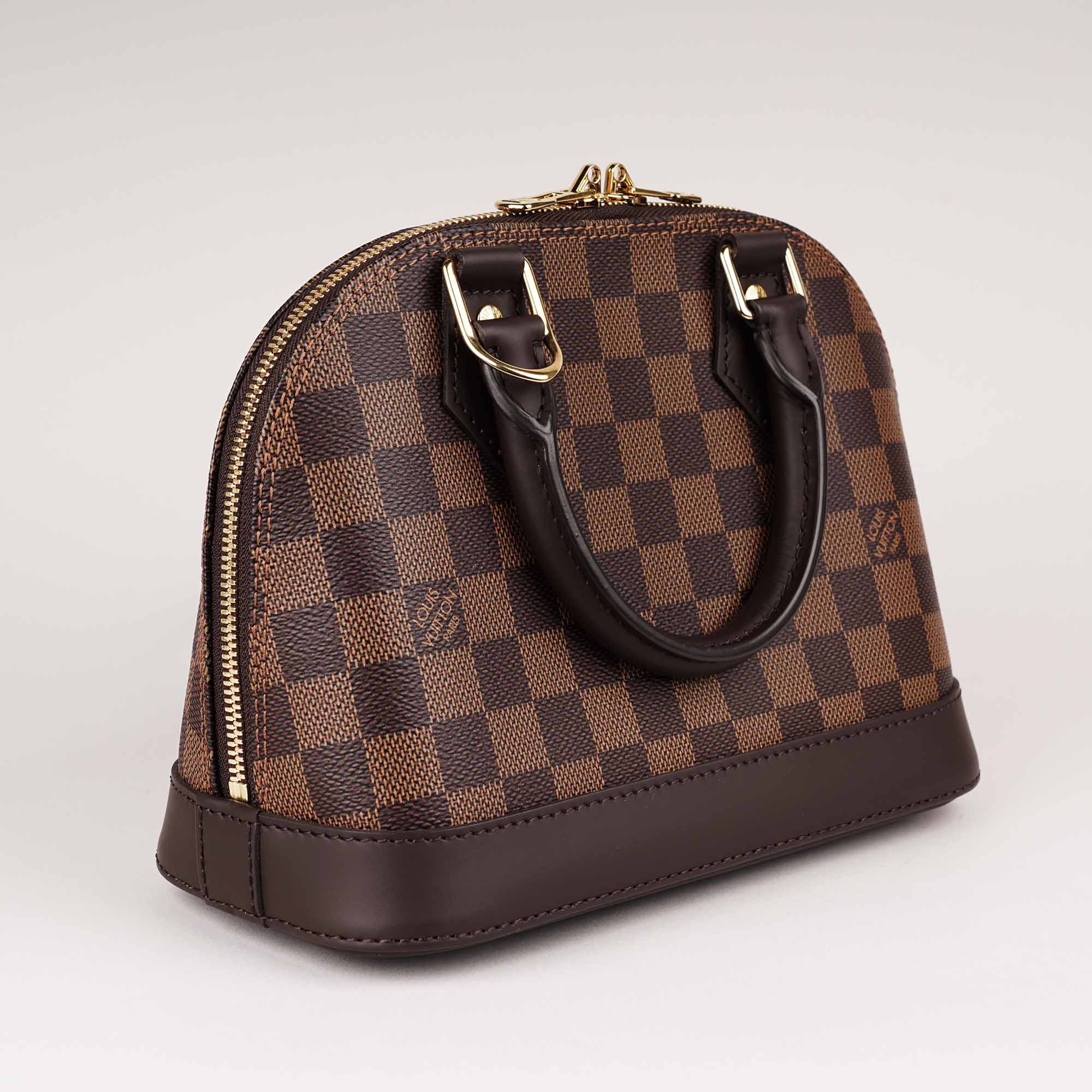This is an authentic Louis Vuitton Alma BB Top Handle in Damier Ebene Canvas.