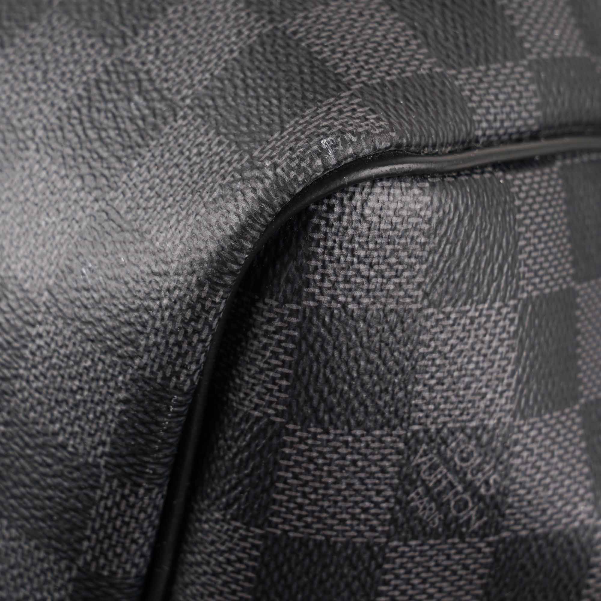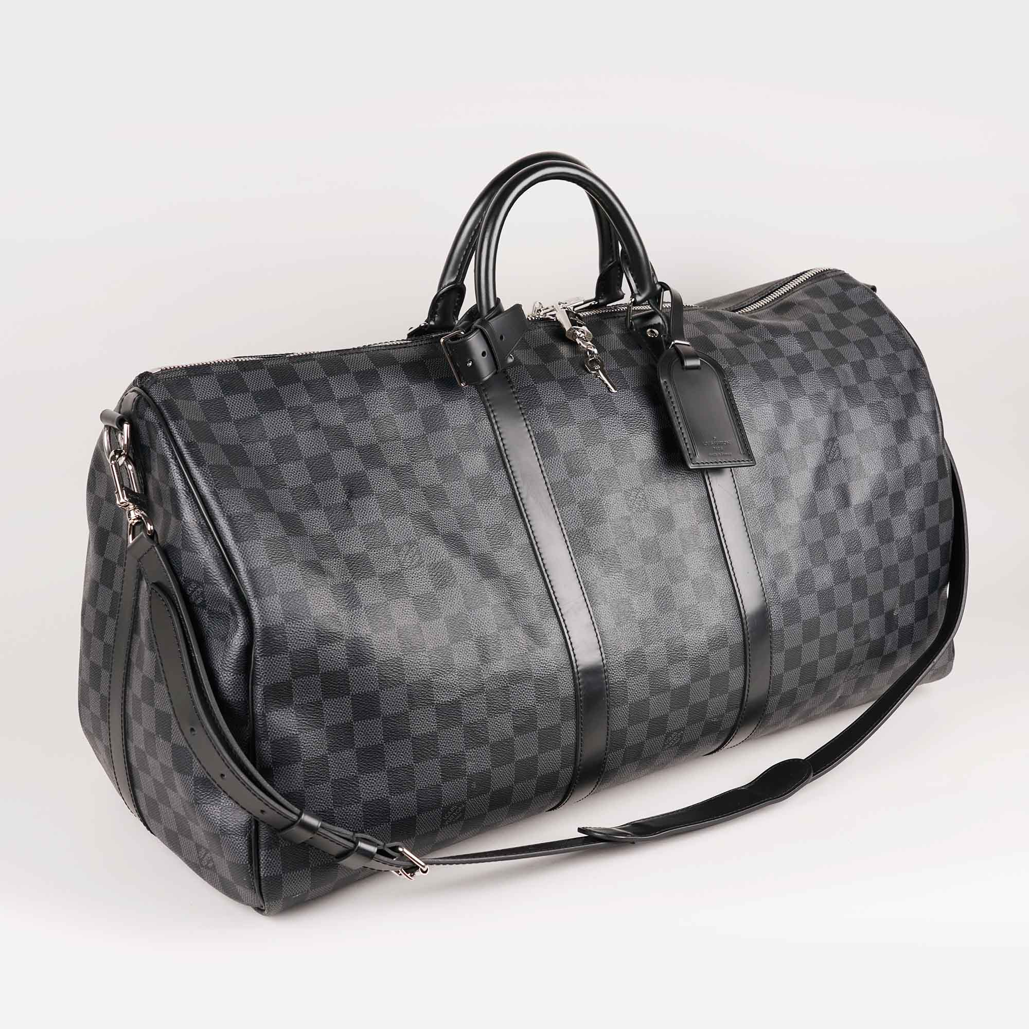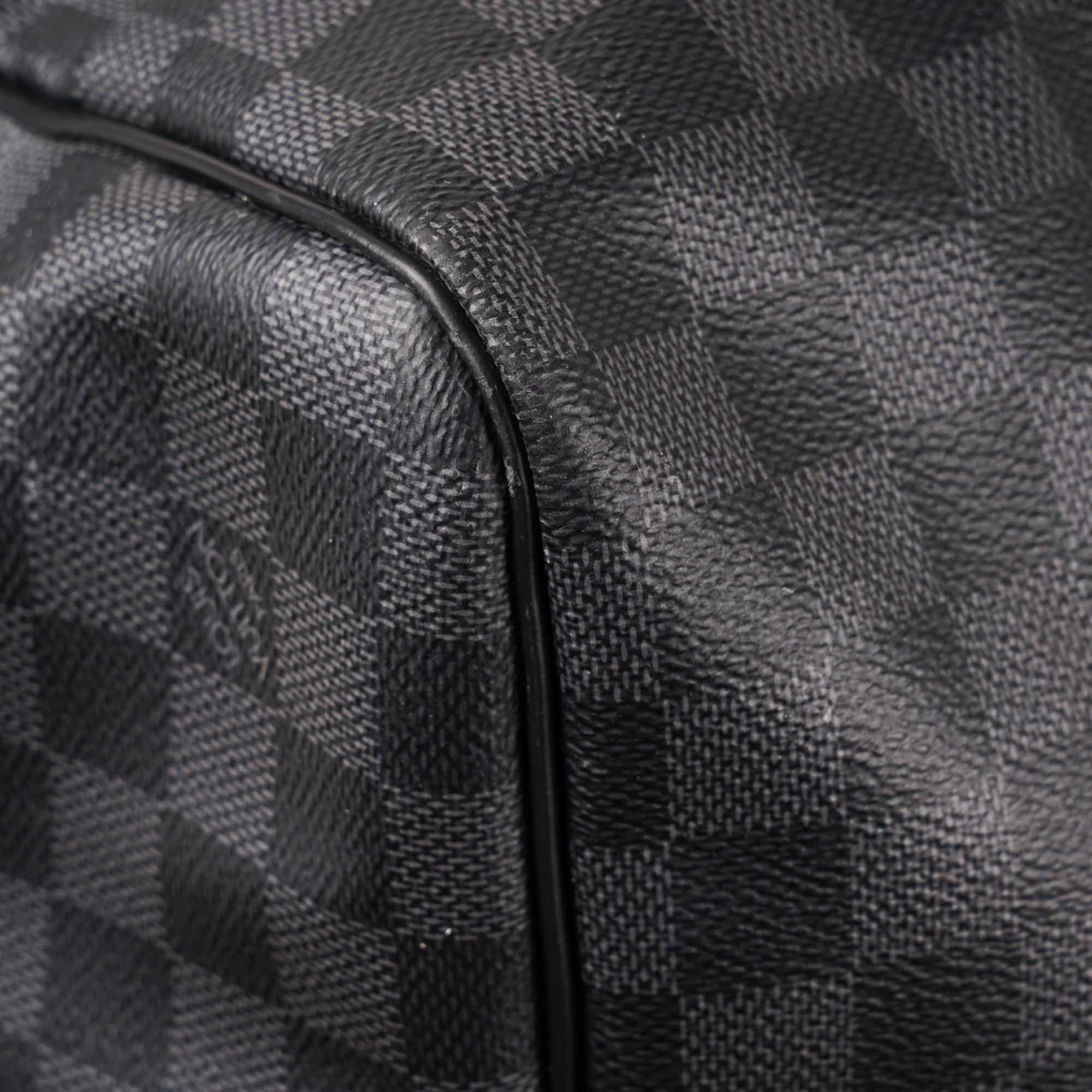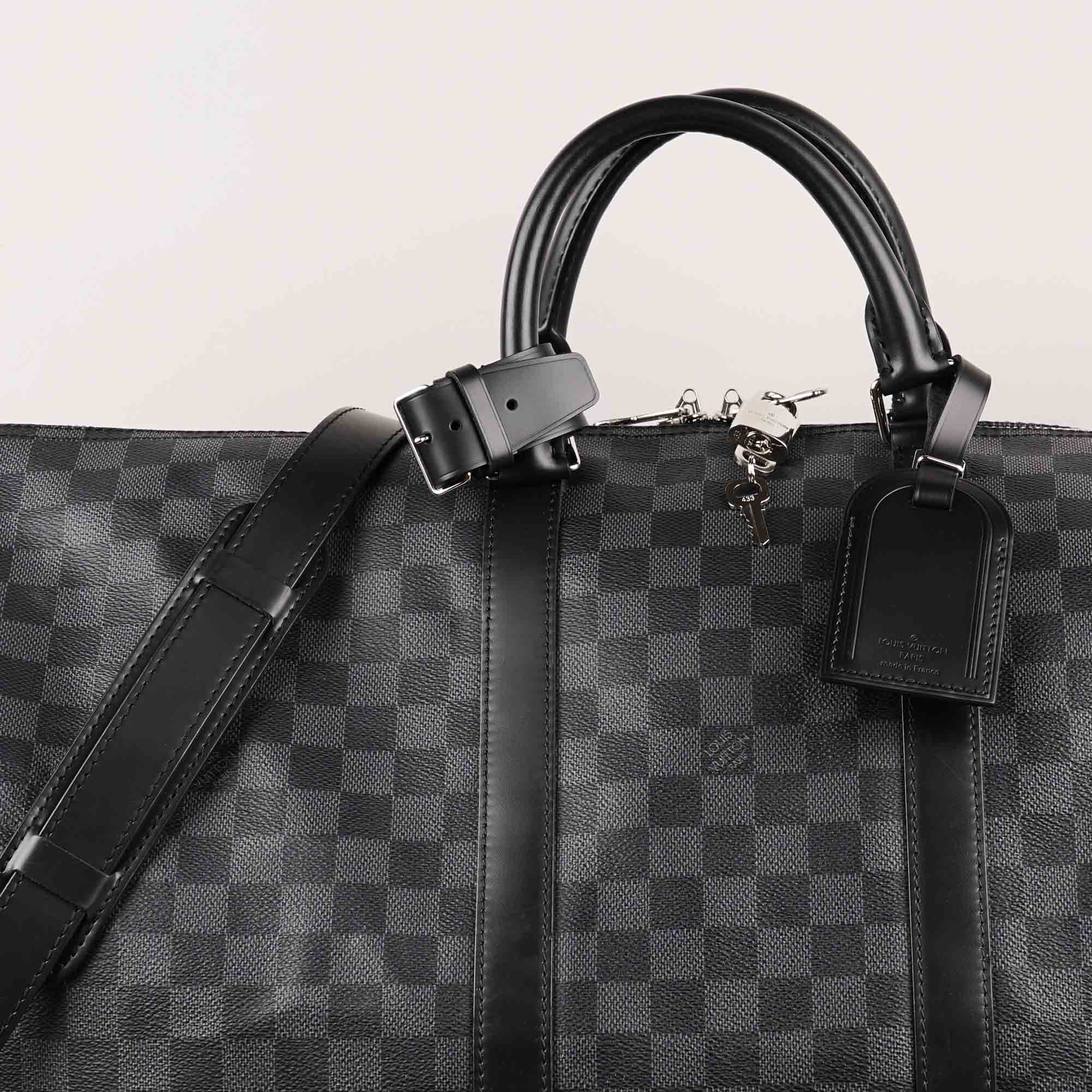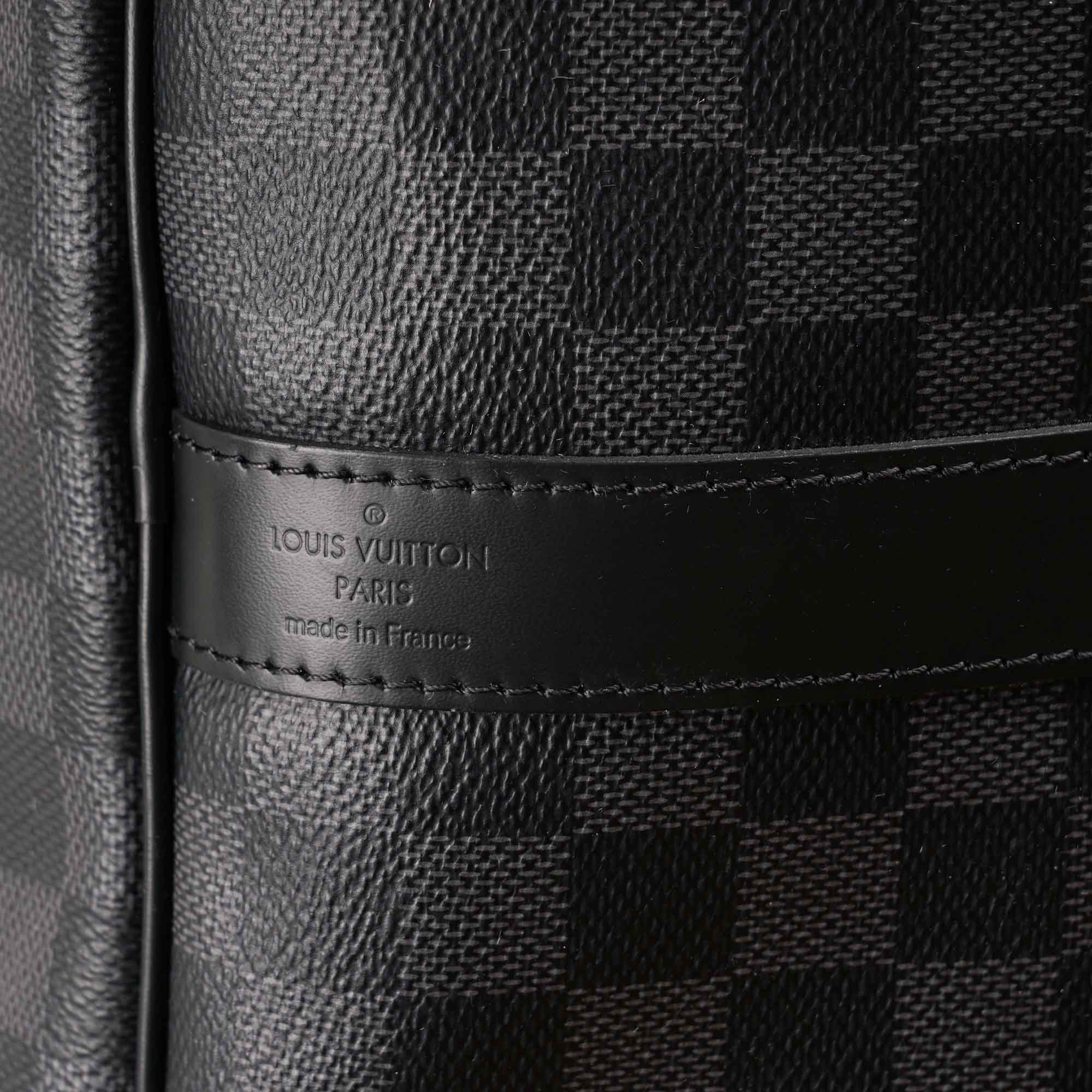 This is an authentic LOUIS VUITTON Keepall Bandoulière 55 Weekend Bag in Damier Graphite Canvas.