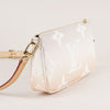 The silhouette remains true to the classic Louis Vuitton Pochette Accessoires design, compact, lightweight and easy to carry. The natural vachetta leather strap adds a timeless touch and develops a characteristic honey patina over time. Gold tone hardware complements the pastel tones for a refined and cohesive finish.