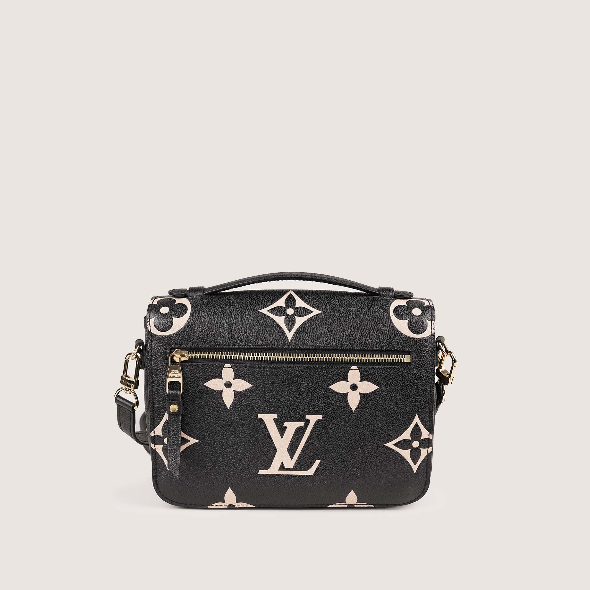 This is an authentic Louis Vuitton Pochette Metis Bag in Black and Beige Empreinte Leather.