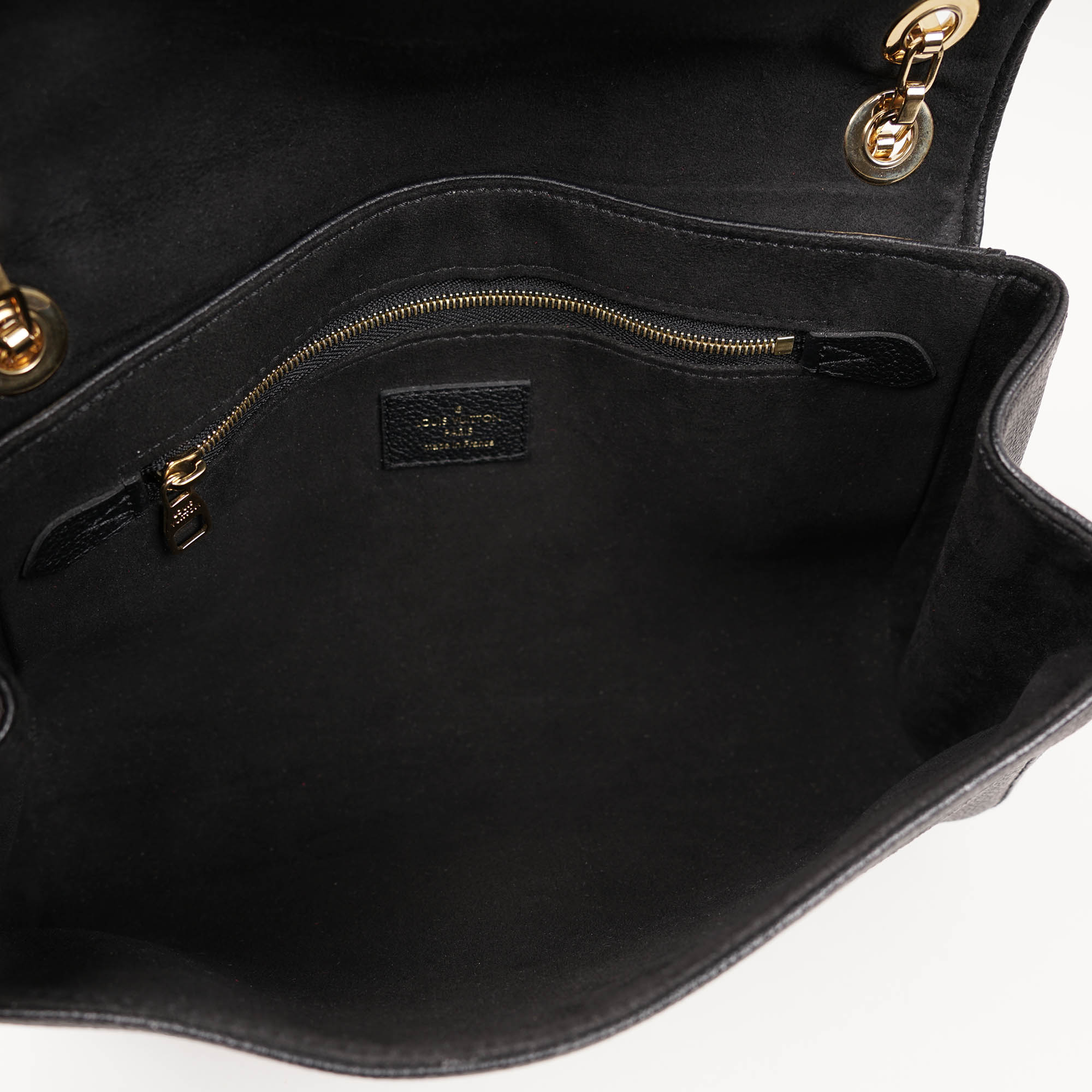 The Louis Vuitton St Germain PM features a structured silhouette crafted in soft, embossed Empreinte leather with gold-coloured hardware. The front flap opens to a well-organised interior with pockets designed to hold your daily essentials, including phone, cardholder and keys. The elegant chain strap allows you to wear the bag crossbody or on the shoulder, making it suitable for both everyday wear and evening occasions. A chic and timeless Louis Vuitton design. Don’t miss out!