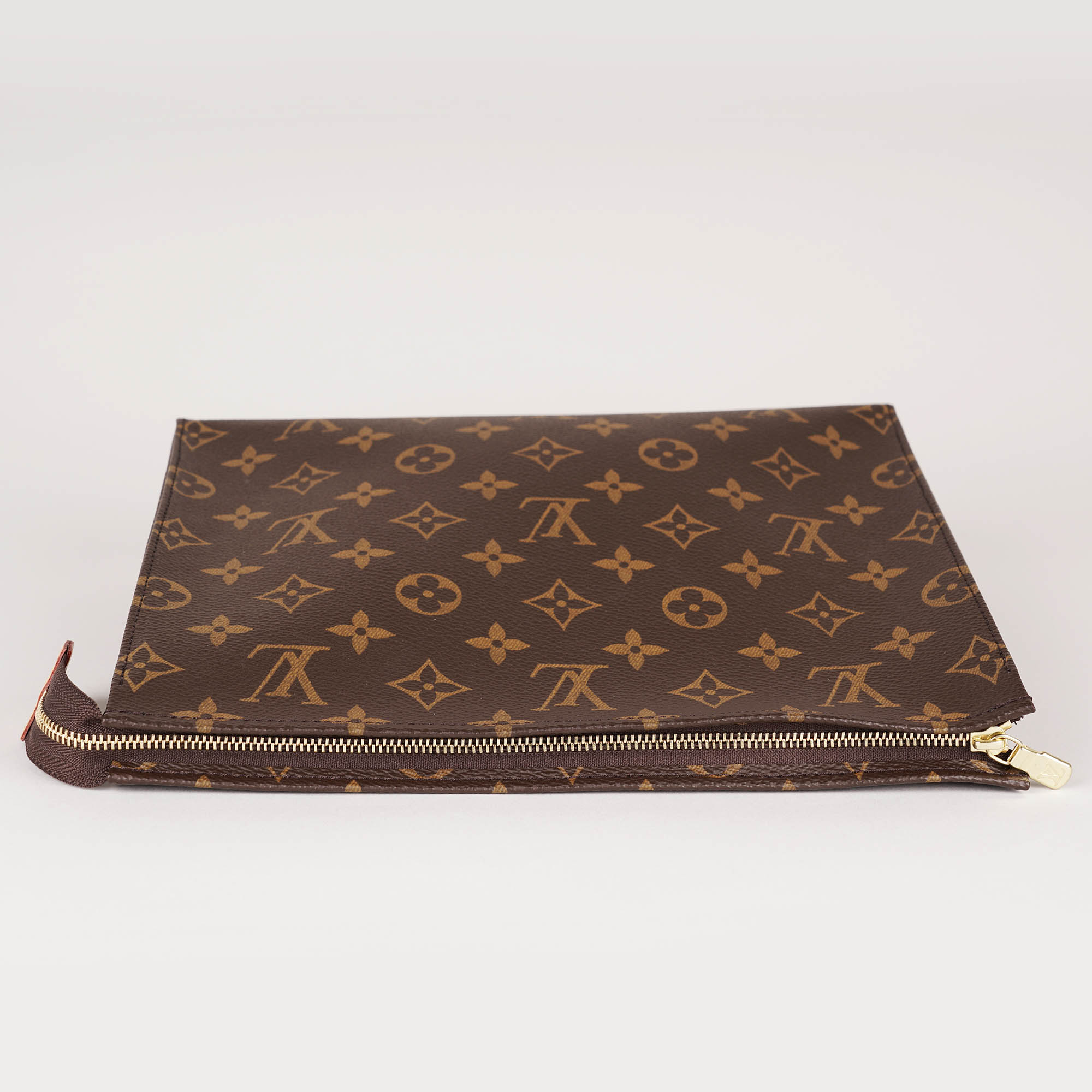 This Toilet Pouch is the perfect blend of style and functionality. Made from beautiful Monogram canvas, it features a washable interior lining and elegant cowhide leather trim. The zipped closure keeps your belongings secure, while the gold colored hardware adds a touch of sophistication. Practical and chic, it's the perfect accessory for any traveler. Don't miss out!