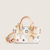 The Louis Vuitton x Murakami Nano Speedy in White Monogram Multicolor Canvas is a vibrant limited‑edition interpretation of one of Louis Vuitton’s most iconic silhouettes. Crafted from coated canvas featuring the legendary Multicolore Monogram—rendered in over 30 vivid colors on a crisp white background—this Nano Speedy celebrates the playful fusion of contemporary art and classic luxury.