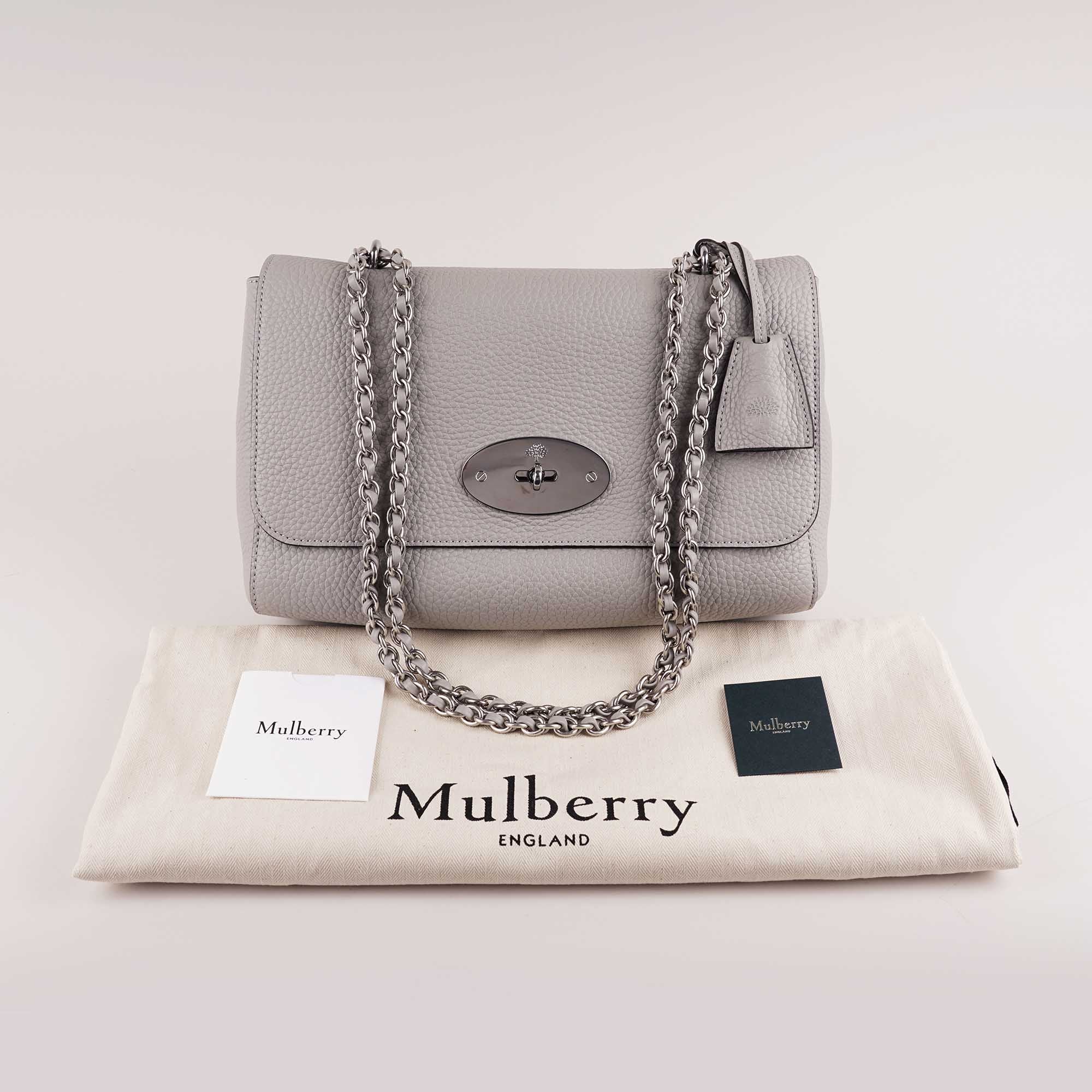 This is an authentic Mulberry Medium Lily Shoulder Bag in Grey Grained Calfskin.