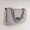 The Mulberry Medium Lily is crafted from durable grey grained calfskin leather and features a shoulder strap for comfortable wear. The flap closure opens to a spacious fabric lined interior with compartments that can hold essentials such as a wallet, phone and small personal items. Its medium size and structured silhouette make it ideal for both everyday use and more polished occasions. A practical and elegant Mulberry bag that combines timeless style with everyday functionality. Don’t miss out!