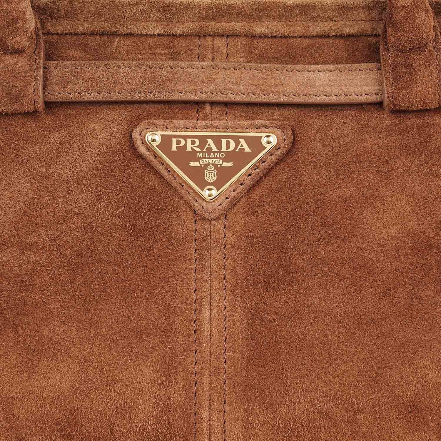 This is an authentic Prada Bonnie Medium Bag in the color Cacao Suede and gold-tone hardware.
