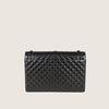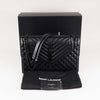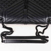 This rare all-black Saint Laurent Large Envelope Bag features a structured silhouette and chevron quilting. The front flap has a black YSL logo and a snap-closure that opens to a spacious interior with multiple pockets. The versatile chain strap can be worn on the shoulder, cross-body, or on the arm. A functional day-to-night bag. Don´t miss out!