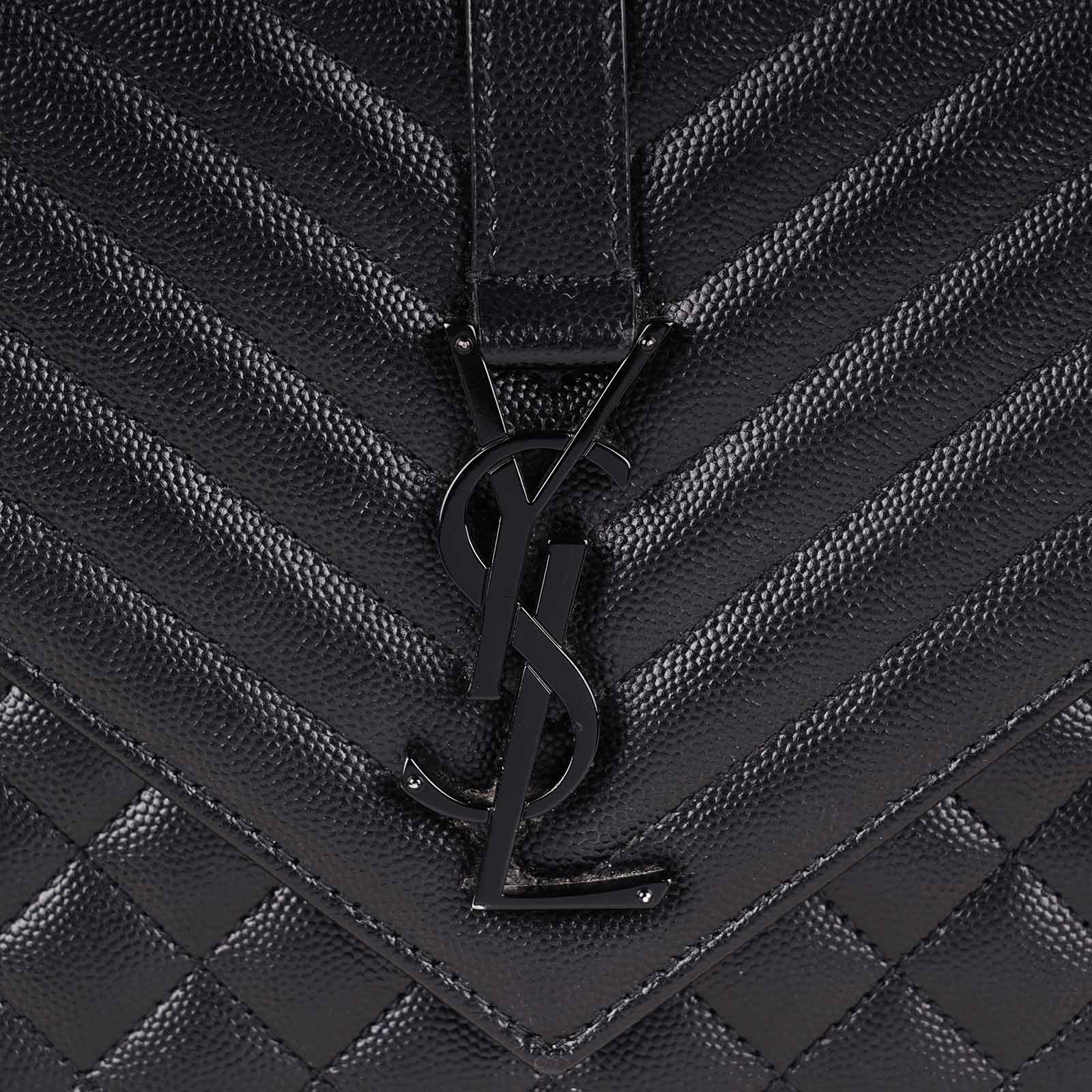 This is an authentic Saint Laurent Large Envelope Bag in black Grain de Poudre and Black Hardware.
