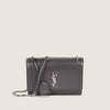This is an authentic SAINT LAURENT Medium Sunset Shoulder Bag in Grey Smooth Leather with silver-colored hardware.