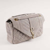 The Saint Laurent Soft Small Envelope Shoulder Bag is a beautifully refined piece that pairs luxury with effortless ease. Crafted from stunning grey suede, it has a soft, tactile feel and a subdued elegance that makes it incredibly versatile. The signature chevron quilting gives the bag gentle structure, while the iconic YSL monogram in aged gold hardware adds a warm, vintage-inspired contrast that elevates the entire look. Finished with a comfortable leather-and-chain strap and a neatly organized interior, this bag offers both style and practicality—an irresistibly chic addition to any wardrobe. Don't miss out!