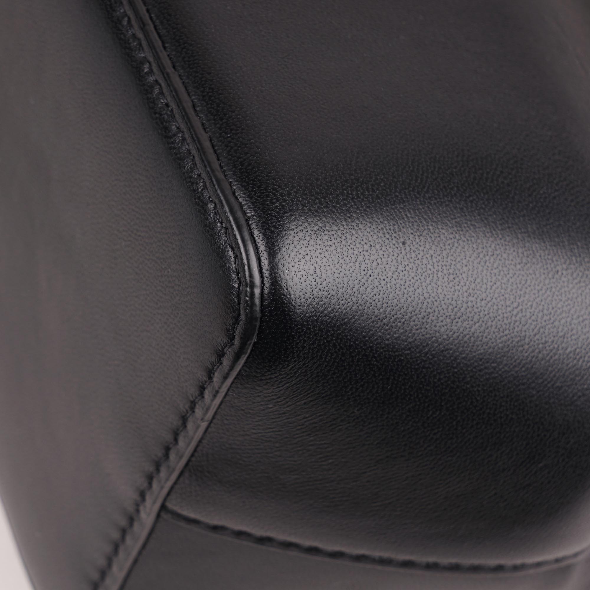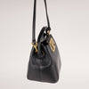 This Valentino Bag is made with supple black nappa leather and features the signature VLogo emblem on the front. The drawstring opening reveals a very small interior designed to hold only your essentials such as a cardholder, keys and a lipstick (might not fit an iPhone). The slim strap and top handle allows you to wear the bag crossbody, by hand or on the shoulder, making it a delicate yet impactful accessory for both day and evening. Don’t miss out.