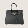 Detta är en äkta Hermès Birkin 30 väska i svart Togo-läder med palladiumpläterad hårdvara.