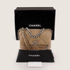 Detta är en äkta Chanel 19 Large Flap i brunt lammskinn. Denna stilrena axelväska är tillverkad i diamantquiltat lammskinn i en karamellbrun nyans. Väskan pryds av ett CC-vridlås i åldrad guldfärg på samt en läderinfälld kedjerem i en mix av åldrat guld, mörkt silver och ruthenium, kompletterad med en axelpad för ökad komfort. Fliken framtill öppnas till en textilinteriör med ett innerfack med dragkedja. En ikonisk och elegant modell som kombinerar sofistikerad design med funktionell användning. Missa inte denna!