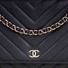 Detta är en äkta Chanel Chevron Wallet on Chain i Black Soft Caviar Leather.