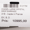 Örhängena kommer från Chanels Spring Summer 2018-kollektion, en säsong som kännetecknades av en överdådig och dekorativ kollektion. Designen består av imitationpärlor, CC-logotypen prydd med kristaller samt en stor droppformad detalj som ger volym och rörelse. Materialkombinationen skapar ett tydligt men balanserat uttryck, samtidigt som materialen gör örhängena lätta och behagliga att bära. Ett karaktärsstarkt Chanel-smycke från en ikonisk kollektion som speglar modehusets djärva estetik under perioden.