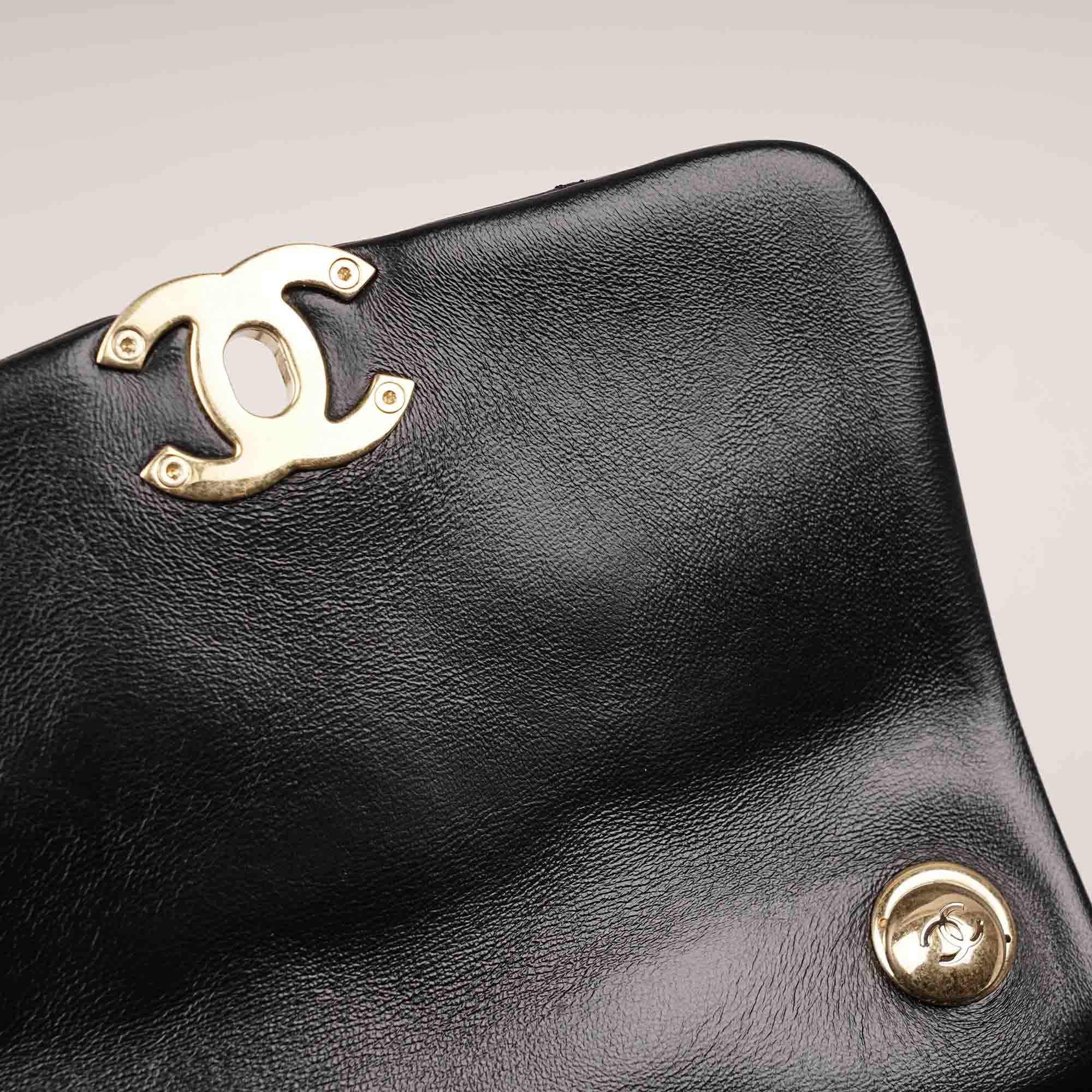 De guldfärgade metalldetaljerna, inklusive det tydliga CC‑spännet och de kraftiga kedjelänkarna på det styva topphandtaget, skapar en vacker kontrast mot det mjuka lädret och förstärker väskans tidlösa uttryck. Den läderinvävda kedjeremmen ger flera bäralternativ — bär den elegant i handen med top handtaget, eller över axeln/crossbody för ett mer avslappnat och praktiskt uttryck.