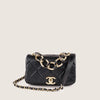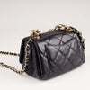 Detta är en äkta Chanel Mini Flap Chain Top Handle i Black Diamond Quilted Lambskin.
