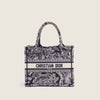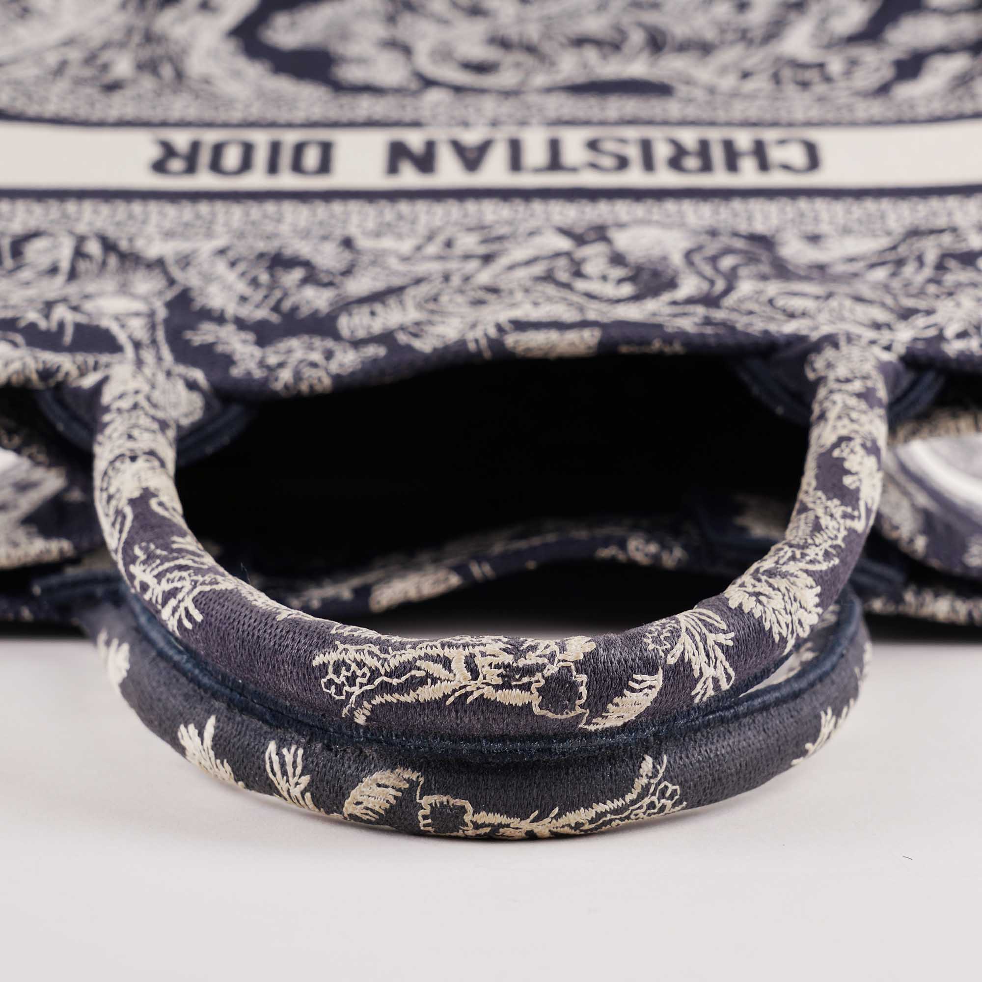 Detta är en äkta CHRISTIAN DIOR Small Dioriviera Toile De Jouy Book Tote i blå broderad canvas.