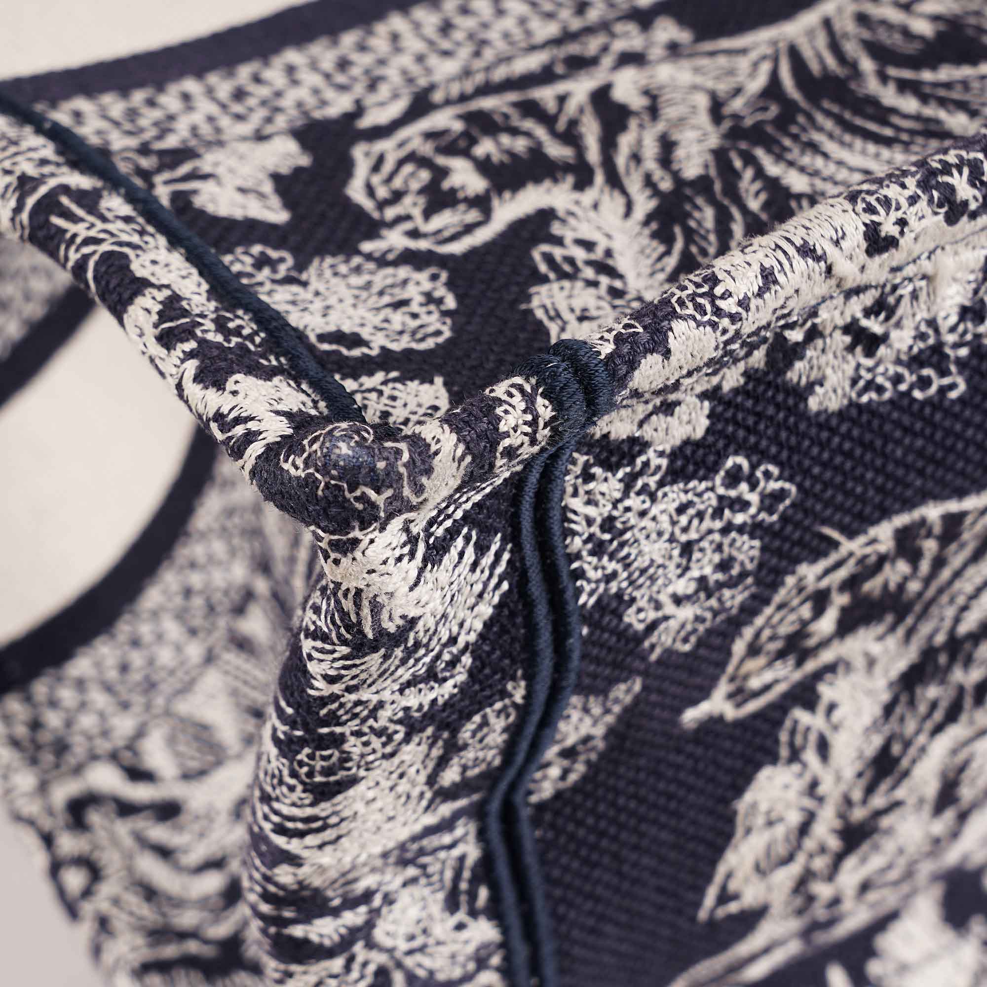 Christian Dior Book Tote är tillverkad i broderad canvas och pryds av det ikoniska Toile De Jouy-mönstret i blå nyanser. Väskan har topphandtag i canvas samt den klassiska CHRISTIAN DIOR-logotypen broderad framtill i vitt. Den öppna toppen leder till en rymlig interiör med gott om plats för dina dagliga tillhörigheter. Denna Dior Book Tote är designad för dagligt bruk och kombinerar funktionalitet med Diors karakteristiska elegans. Missa inte denna.