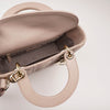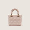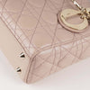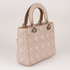 Detta är en äkta Christian Dior Small Lady Dior i puderrosa Cannage-läder med guldfärgad hårdvara.