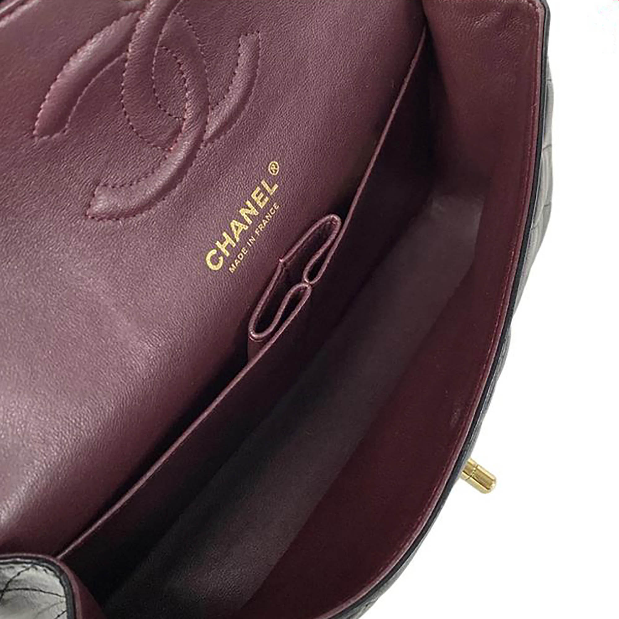 This is an authentic Chanel Classic Medium Double Flap Bag in Black Lambskin.