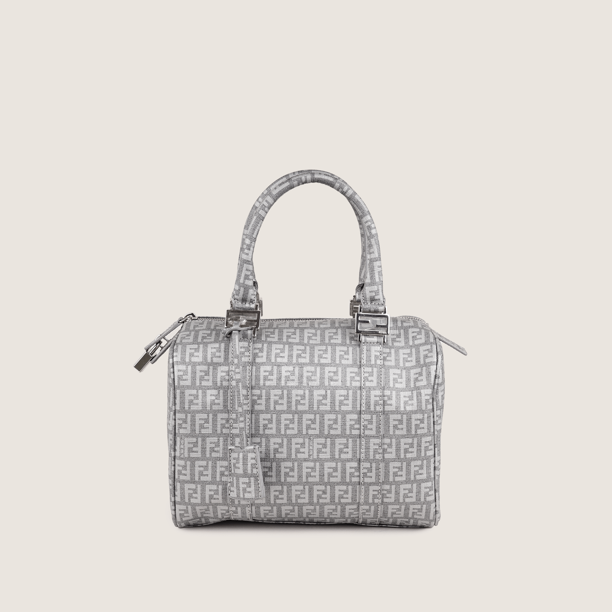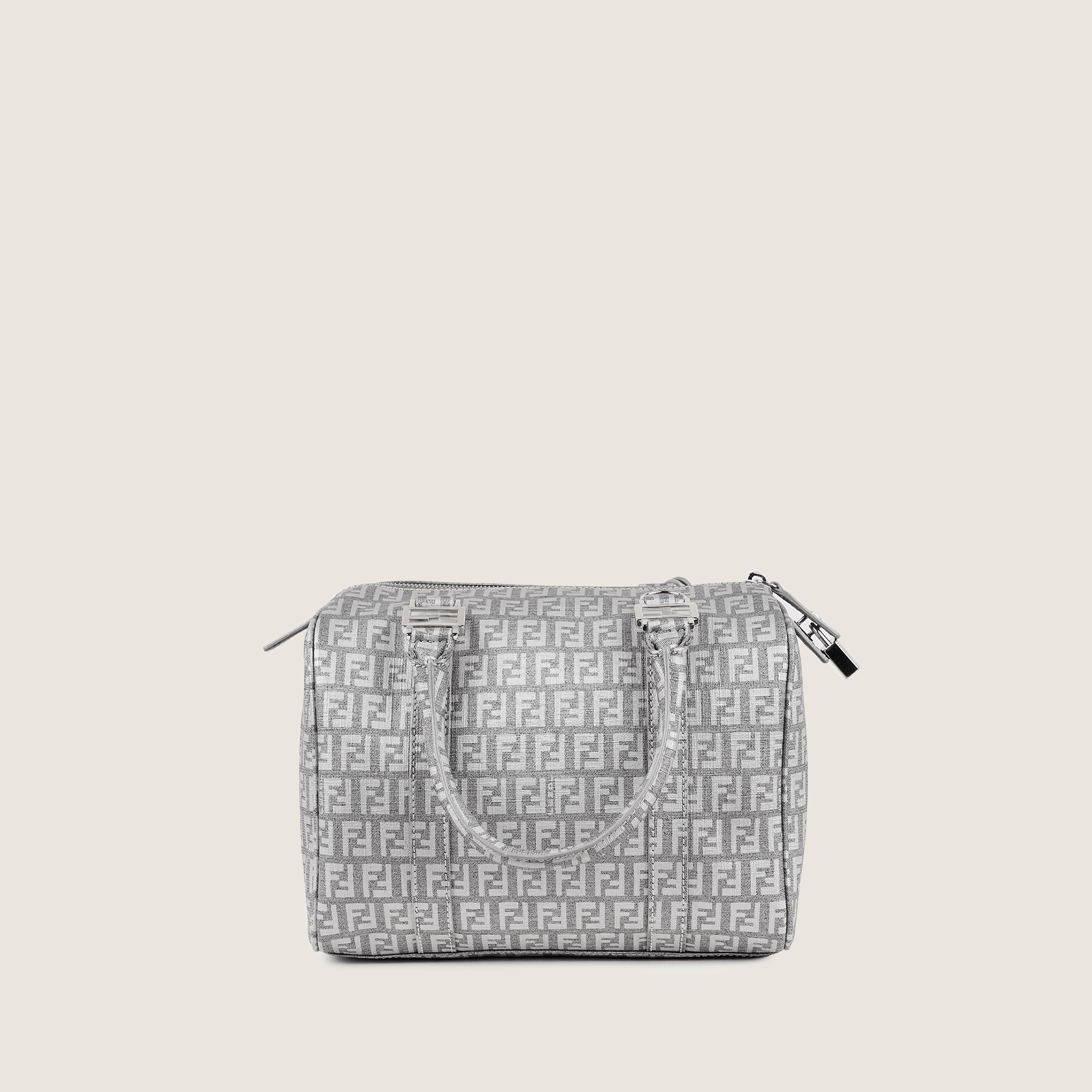 Detta är en äkta Fendi Bauletto Boston Bag i grå FF-canvas.