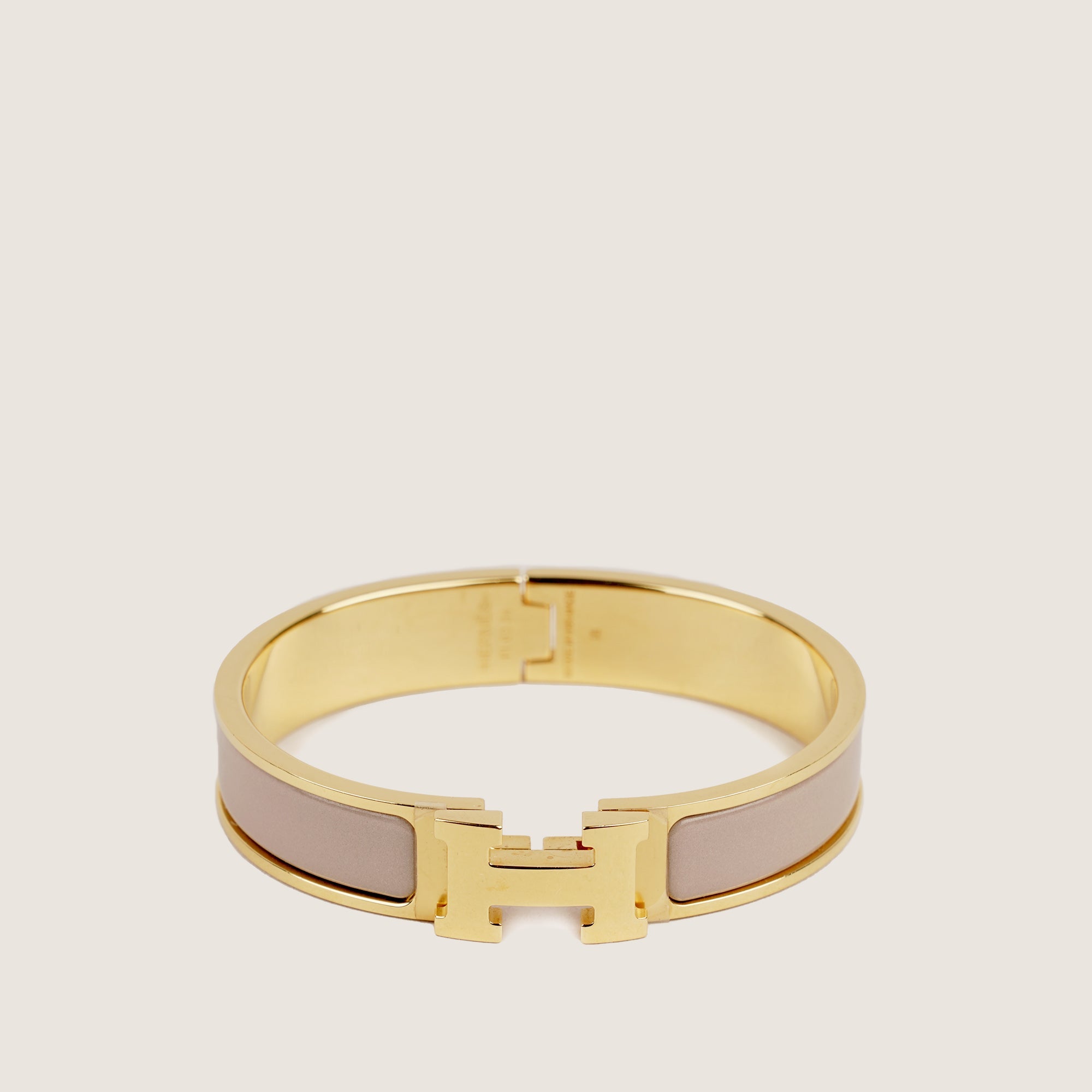 Hermès Clic H Bracelet i Marron Glacé-emalj kan bäras ensamt som ett statement eller kombineras med andra Hermès-armband för en lager-på-lager-look. Perfekt både till vardags och kvällsbruk tillför det en känsla av lyx till varje outfit. Ett måste för Hermès-samlare och modeälskare.