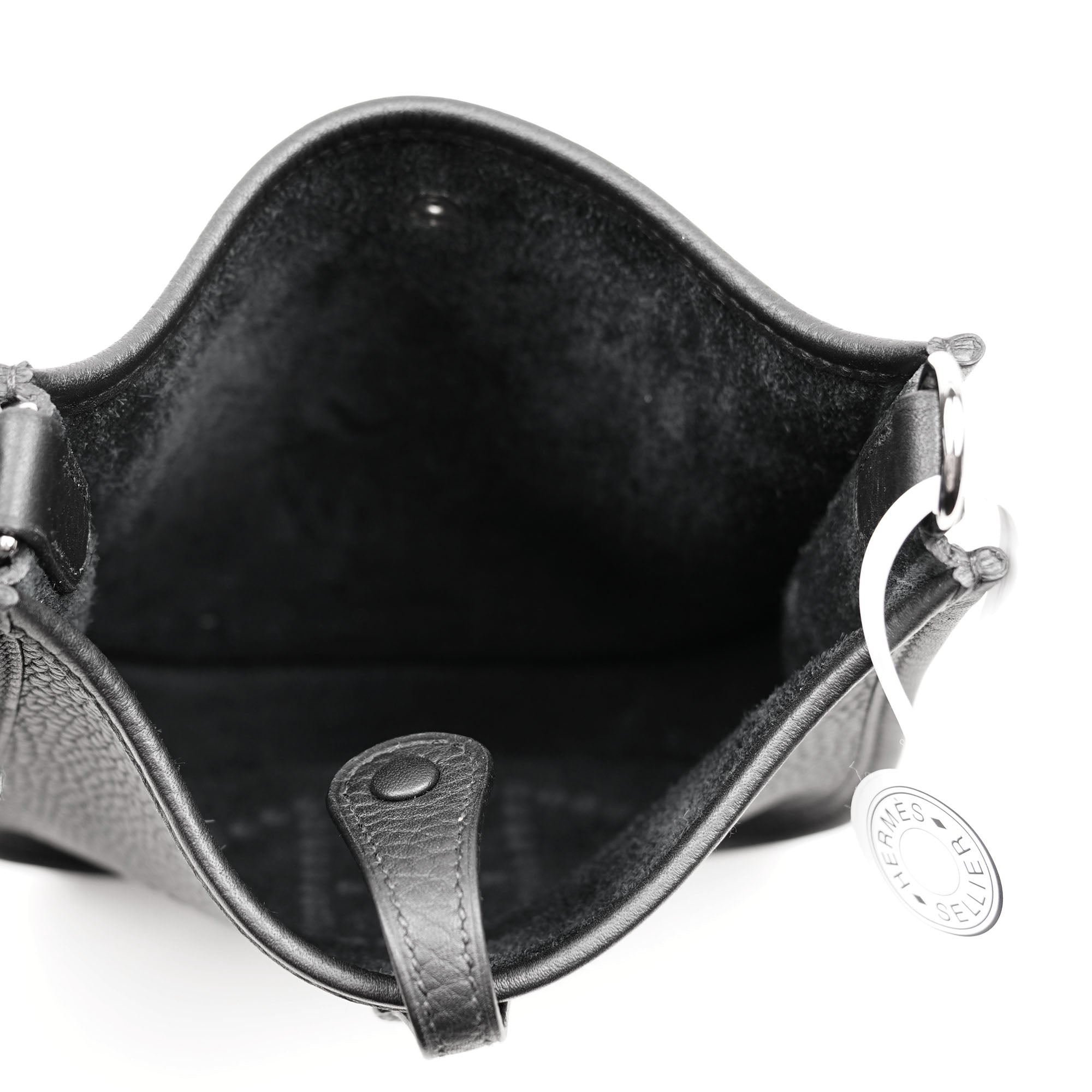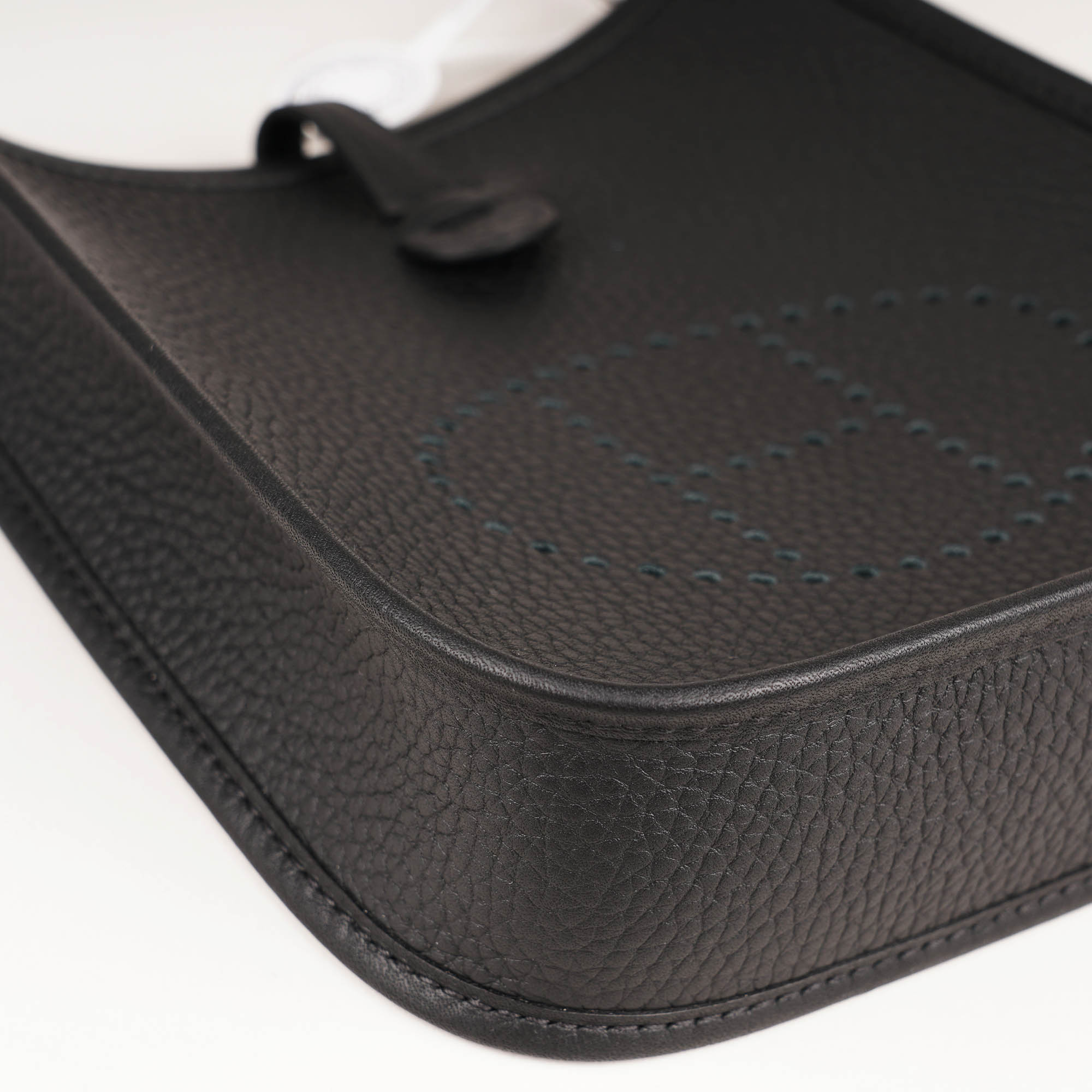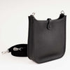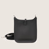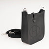 Evelyne-väskan designades ursprungligen i syfte att transportera ridutrustning. De uppdaterade versionerna är både feminina och praktiska. Den här specifika väskan är den minsta i Evelyne-familjen och är tillverkad av slitstarkt svart Clemence-läder. Den har ett invändigt foder i mocka, en H-formad perforering på baksidan samt palladiumpläterad metallhårdvara och en matchande och avtagbar canvas-axelrem. Bär den över axeln eller som crossbody. Missa inte detta!
