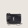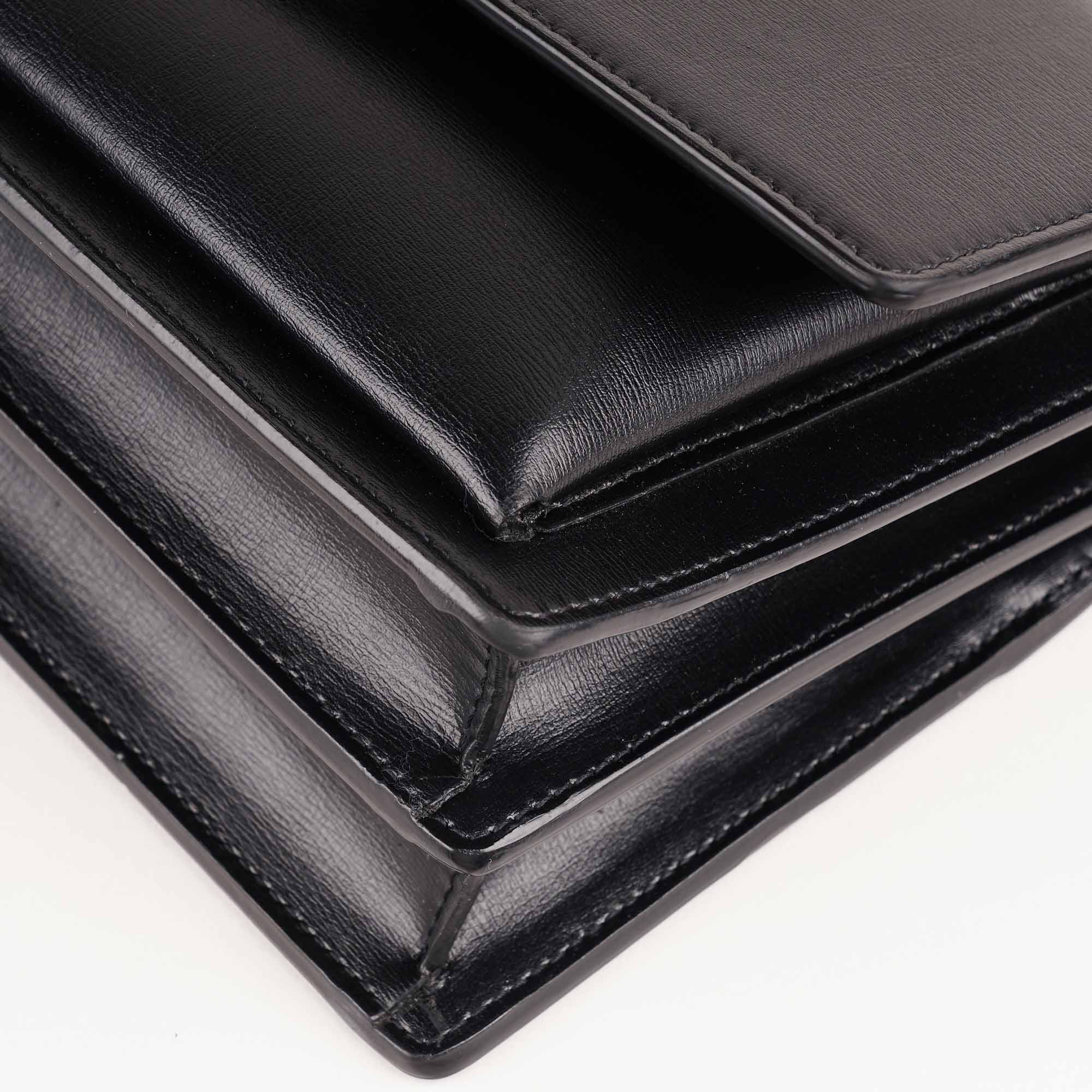 Detta är en äkta Saint Laurent Sunset Medium Shoulder Bag i Black Smooth Calfskin.