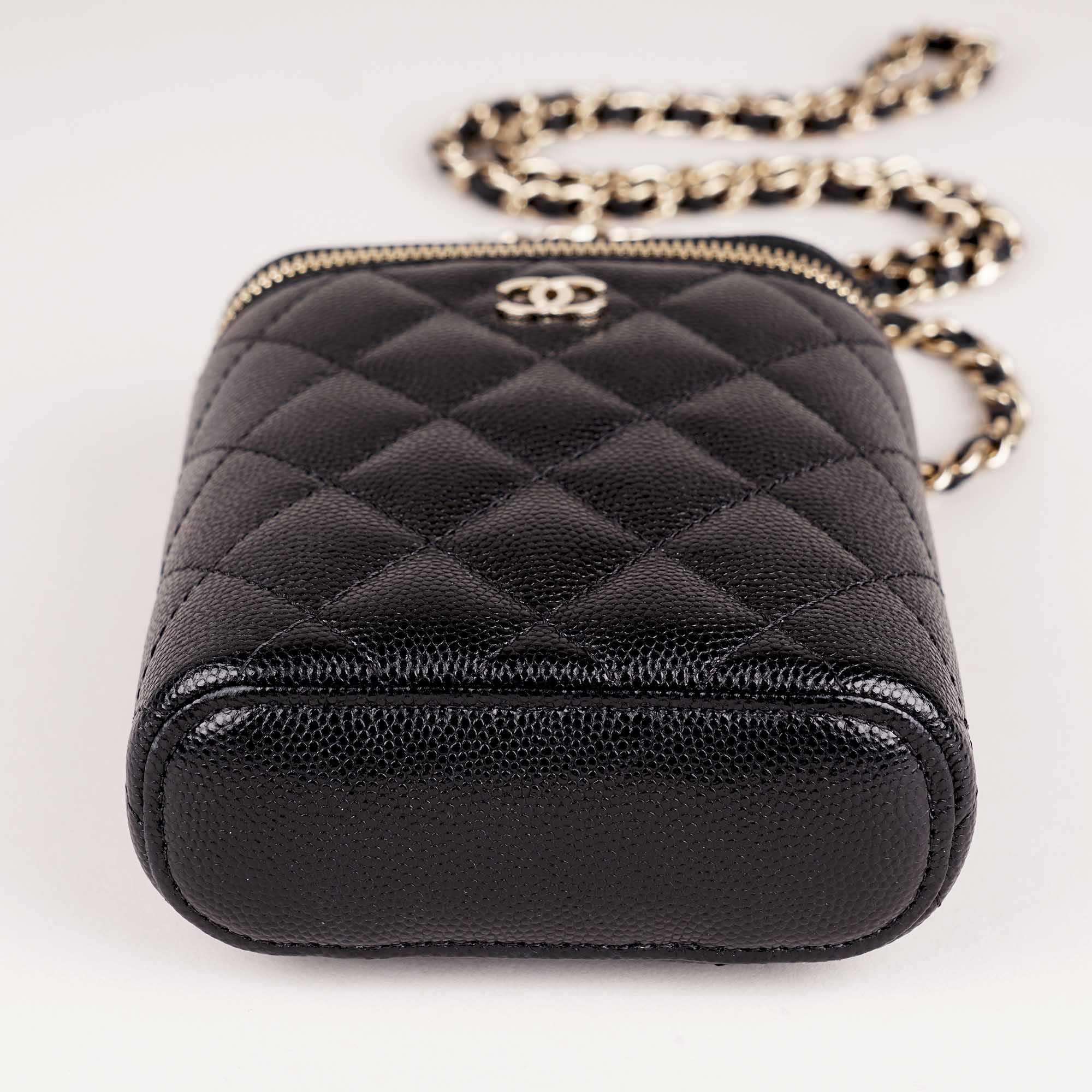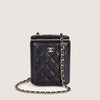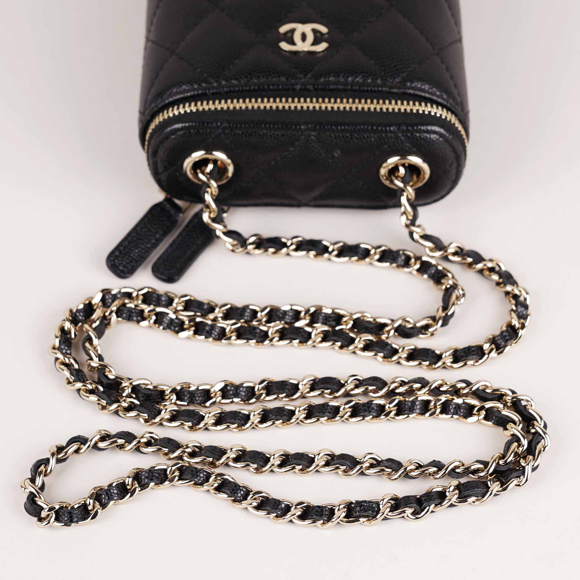 This is an authentic Chanel Small Vanity on Chain Bag.