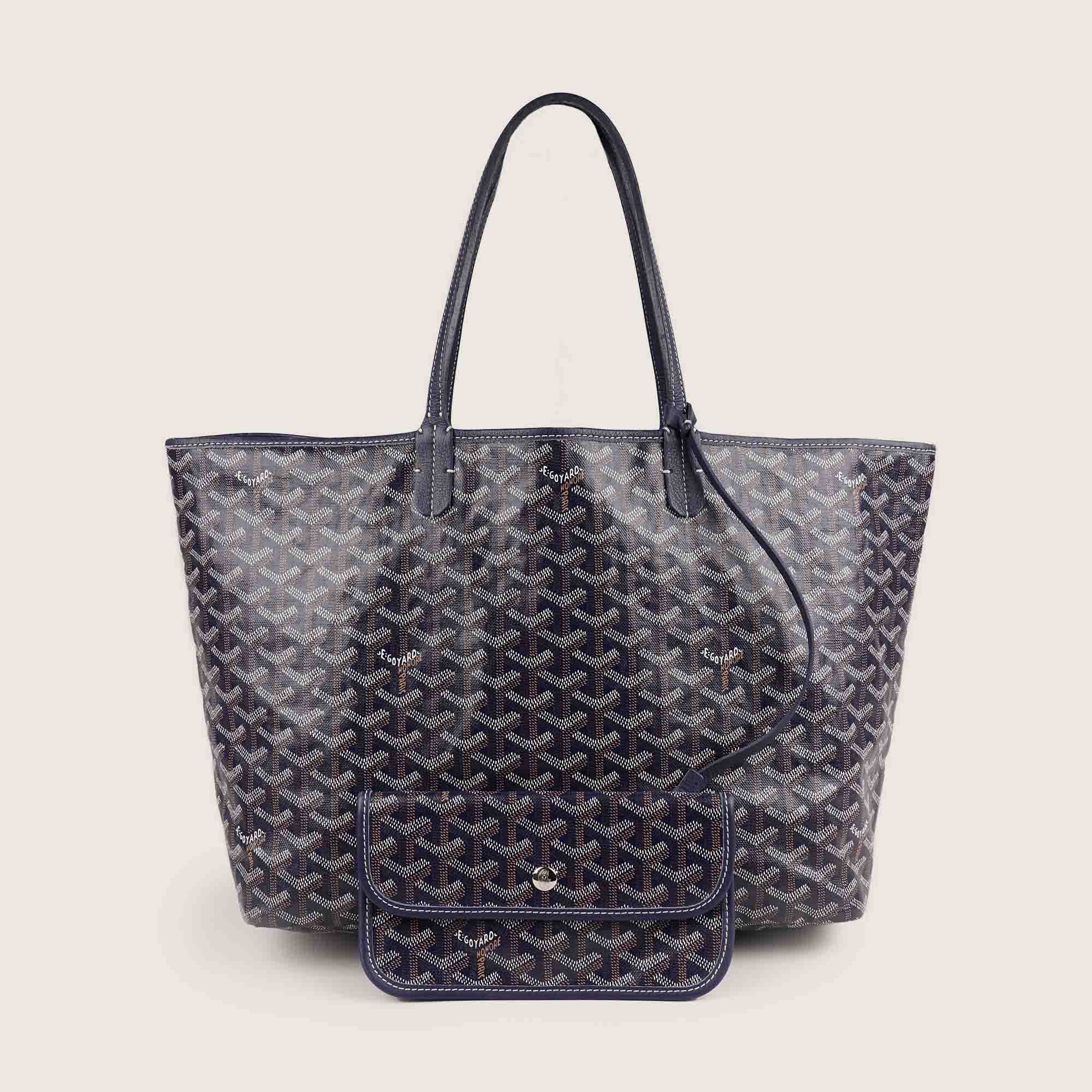 Detta är en äkta Goyard St Louis Pm Tote i Navy Blue Goyardine Canvas & Chevroches Calfskin.